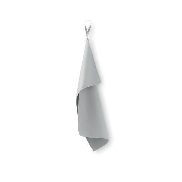 Microfibre towel made of 90% polyester and 10% polyamide with elastic handle.